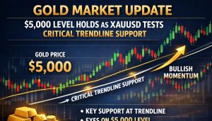 Gold Market Update: $5,000 Level Holds as XAUUSD Tests Critical Trendline Support