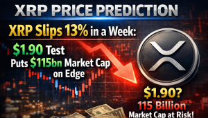 XRP Price Prediction: XRP Slips 13% in a Week: $1.90 Test Puts $115bn Market Cap on Edge