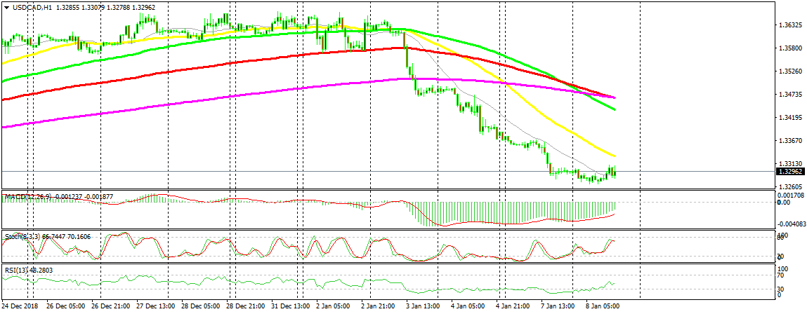 USD/CAD has turned bearish in the last four trading days as crude Oil reversed higher and the downtrend looks very steep. This pair has lost around $4 in four days. Although, it has put up a retrace today. The price has broken above the 20 SMA (grey) on the H1 chart, but we have the 50 SMA (yellow) standing around 30 pips higher. So, I think that the 50 SMA is a good place to go short on USD/CAD since stochastic is almost overbought as well.