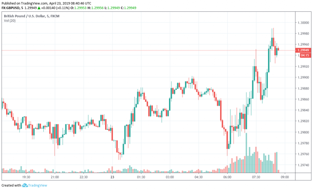 The Easter break is over for the UK Parliament, but Brexit concerns continue to remain unresolved. Cross-party talks are on, but no consensus appears to have been reached on the deal so far. GBP/USD looks slightly upbeat for now, trading at 1.299, as the trading session begins in Europe.