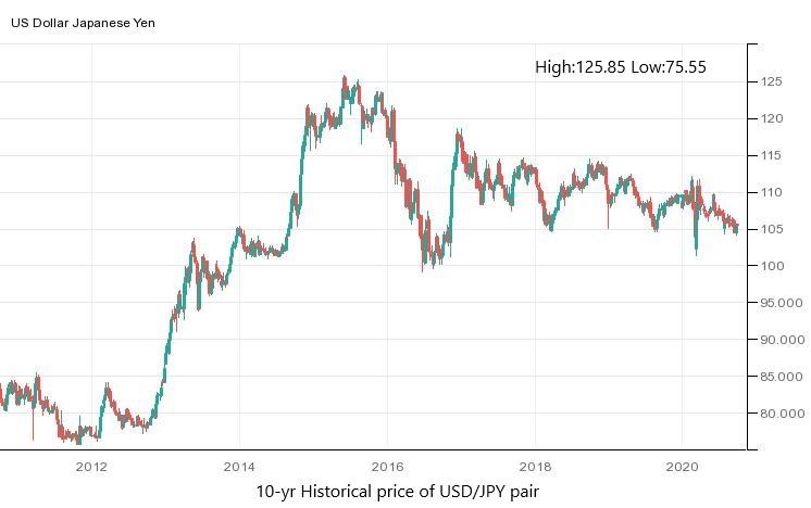 The Japanese Yen is the fourth reserve currency after the US dollar, the euro and the British pound. The yen is the third most traded currency in the world. In 1871, the Meji government adopted the yen as a currency for the first time. The value of the Japanese yen has grown considerably since its inception, due to the strong Japanese industrial complex. Agricultural innovation, technological developments and the wide range of exportable products have helped the Japanese yen to become the third most traded currency globally. Ever since the USD/JPY pair started trading in the financial market, its prices have declined continuously throughout history. In the 1970s, the prices started at a level above 350, and now the pair is trading at 105.5.