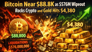 Bitcoin Near $88.8K as $576M Wipeout Rocks Crypto and Gold Hits $4,380