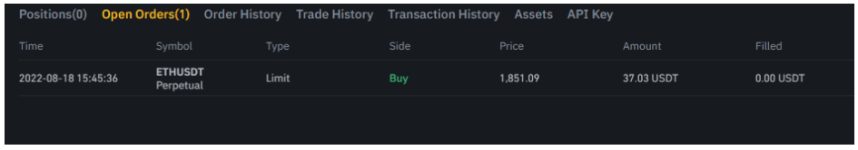 10. Now, our order goes to Open Orders and is waiting to be filled.