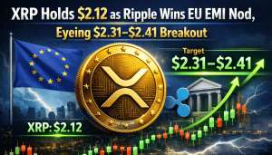 XRP Holds $2.12 as Ripple Wins EU EMI Nod, Eyeing $2.31–$2.41 Breakout