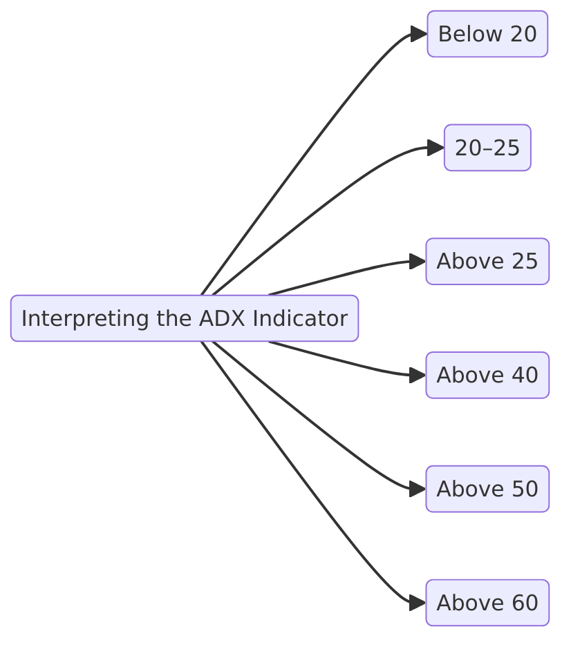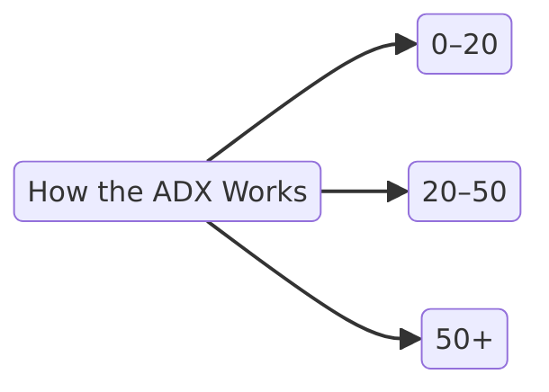 The ADX ranges from 0 to 100, with readings offering insight into market conditions: