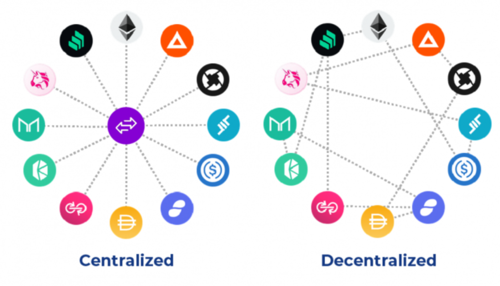 - DEXs operate on a decentralized, peer-to-peer network where trades are executed via smart contracts, without any human intervention. This means there’s no risk of having your account frozen or trades being blocked by a central authority.