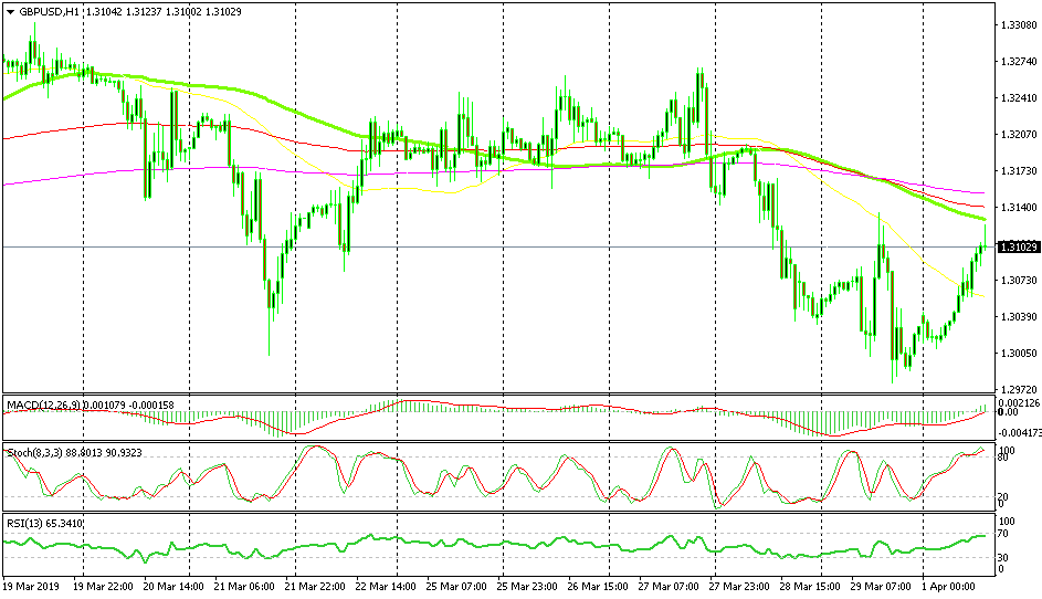 GBP/USD lost around 150 pips after the vote but it closed the week above 1.30. Today the sentiment has improved in financial markets, as the rally in stocks shows. That’s probably due to the positive economic data from China which was released yesterday, especially the manufacturing PMI.
