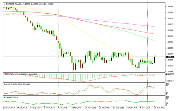 EUR/USD made a 400 pip upward move about two months ago, when the ECB didn´t meet the market expectations regarding the additional measures for the QE program. This week was a repeat of that behavior, although the dollar weakness was responsible for that. The price closed above 50 MA in the weekly chart which is the first time in about 20 months. There is still plenty of resistance on the top side which comes at 1.1450, 1.15 and 1.17… so we cannot say that this is a trend reversal, at least not yet. On the daily chart, we see that the price has broken out of the 1.08-1.10 range that it has been trading in for the last two months. It has moved above the 100 smooth MA, which has now turned into support as it pushed back the price on Friday. These are the technical levels for now but it seems that the fundamentals will have the final say.