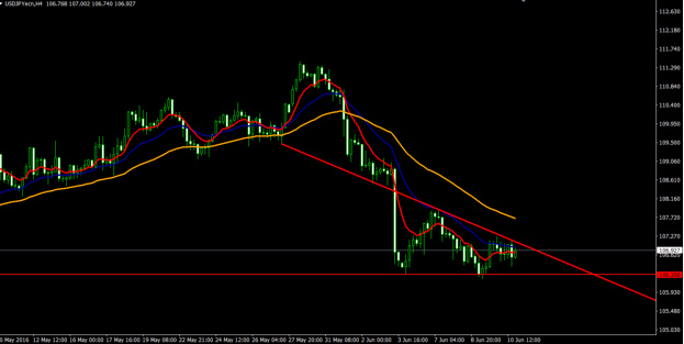 I’m looking to pocket 30 -50 pips today by trading the USD/JPY pair. It has a triangle setup in the H4 chart and is trading below the trend line resistance of 107.180 – as well as the 50 periods EMA. I will consider taking trades below 107.100 and 106.250 with a target of 105.750. Lastly, I expect the pair to trade in a trading range of 107.850 – 105.750.