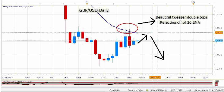 The GBP/USD is losing some of its recent bullish steam, and with two daily candles recently rejecting off of the 20 EMA, this indicates that the bears are defending their territory.