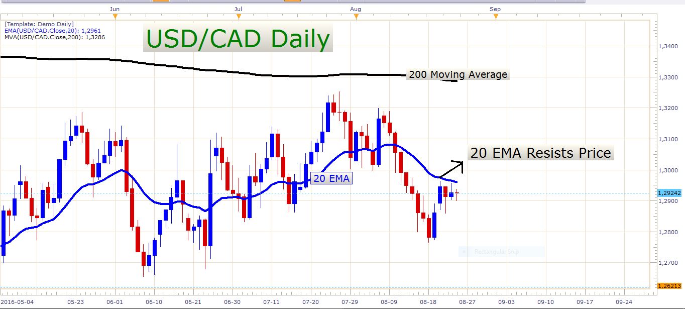 Trading the majors these past few days has been tricky. There has been a decent exchange rate fluctuation here and there, but many pairs have been pretty stagnant. For example, the GBP/USD has been trading in a range for the last 35 trading days. Since the Brexit happened, and the monumental drop in the pound had found support, there has been no clear direction for the GBP/USD. Despite the recent bounce in the EUR/USD, this pair has also been trading in a large range for more than a year. The USD/CHF has also been sideways for almost two years now. Although the USD/JPY has been in a well-defined downtrend for roughly the last year, it has been trading in a tight range for the last few days. Notwithstanding, there are some tradable major pairs, and the USD/CAD is certainly one of them. Let’s look at a daily chart: