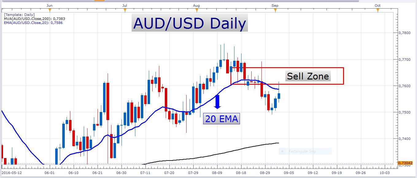 On Friday the AUD/USD briefly traded into the sell zone I mentioned last week. Let’s look at a daily chart with this zone: