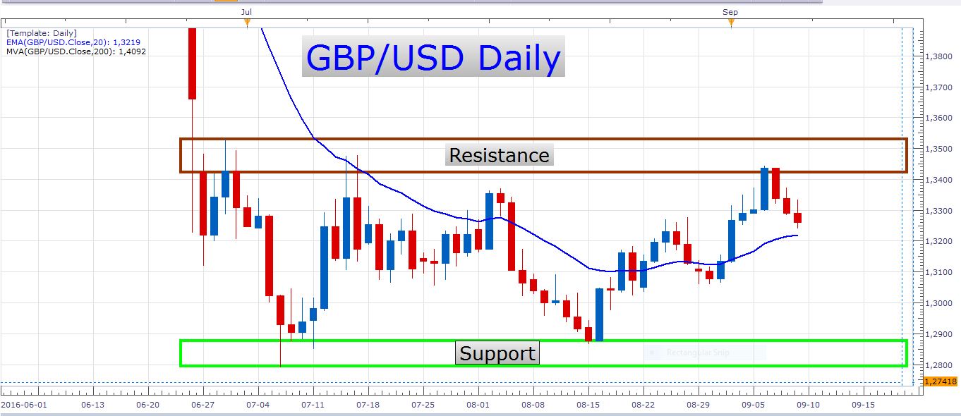 This pair is still trading between major support and resistance levels. It is difficult to join oneself to a certain directional bias at the moment. Nevertheless, I wonder if the market reaction to the Brexit event wasn’t a big overreaction and that the pound is somewhat undervalued at the moment. If this is the case, we could see the GBP/USD break out of this range soon to conquer some more upside. Look at this daily chart: