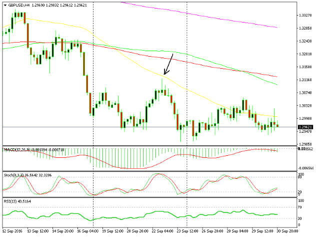 The only long-term forex signal we opened was the GBP/USD sell signal. We opened it by the end of the third week after Carney had his moment of fame. The logic for this was based on H4 forex chart, if you see below the price was close to the 50 moving average (MA) in yellow and the stochastic indicator was already overbought.