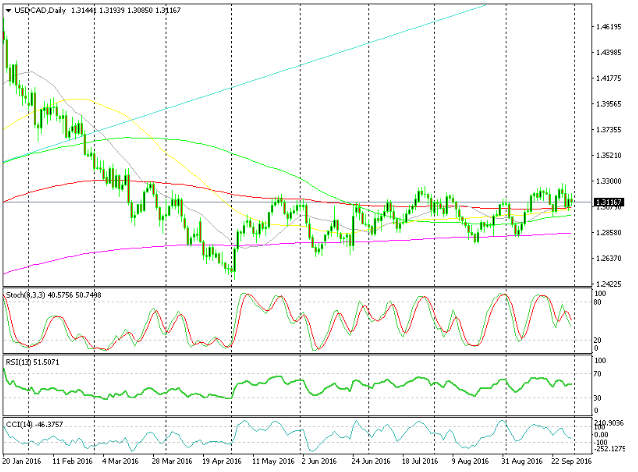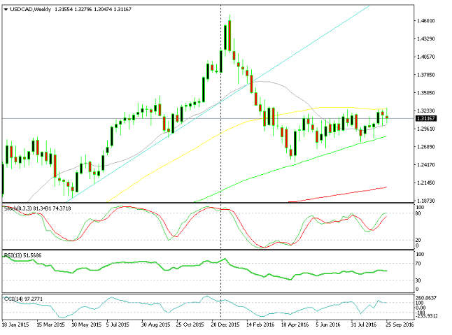 USD/CAD has been the tail of the dog in the recent years. Whichever side the oil has taken, the CAD has followed suit. Oil has traded in a $10 range between $40 and $50/barrel in the last several months, so USD/CAD has traded in a range also, between the 100 and 200 smooth moving averages on the daily chart – as you can see on the daily forex chart below. This month, though, this forex pair broke above the 100 MA in red on the top side, which looks like it´s turning into a support now. On the weekly chart, the 50 and 100 simple moving averages (MA) have been the ones to provide support and resistance for this pair. The 50 MA pushed the price back down once again in September, so the resistance in this timeframe chart is still valid, which means that the range is still intact.