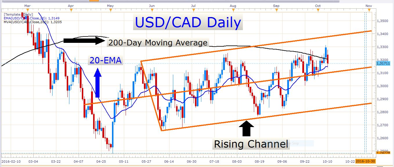 After today’s dreadful decline in the USD/CAD, which started out with a gap lower when the market opened, there is still a lot of scope for a bullish outlook on the pair. Something that compels me to still consider the long side on this pair, is the fact that the price is still holding above the 20-day exponential moving average. Something else to keep in mind is that on a daily chart we’ve recently witnessed the formation of higher swing highs and higher swing lows. This is a good characteristic of a healthy uptrend. Let’s look at some charts: