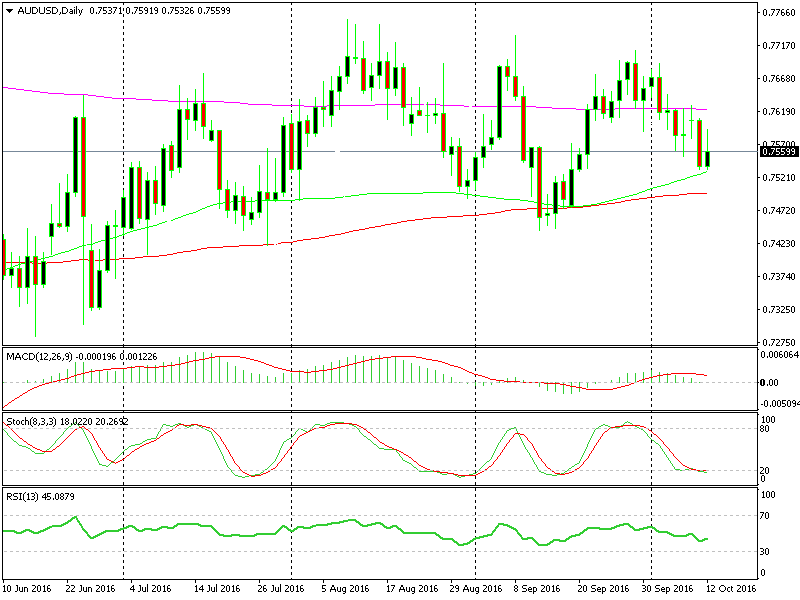 Switching to the H1 chart, the 100 SMA on this timeframe has been a naughty girl today, when it stopped the price from moving higher after we opened the buy signal. That moving average comes at 0.7570s. Today´s high at 0.7590-0.7600 is the second resistance level and the 100 SMA on the H4 chart add extra strength to that.