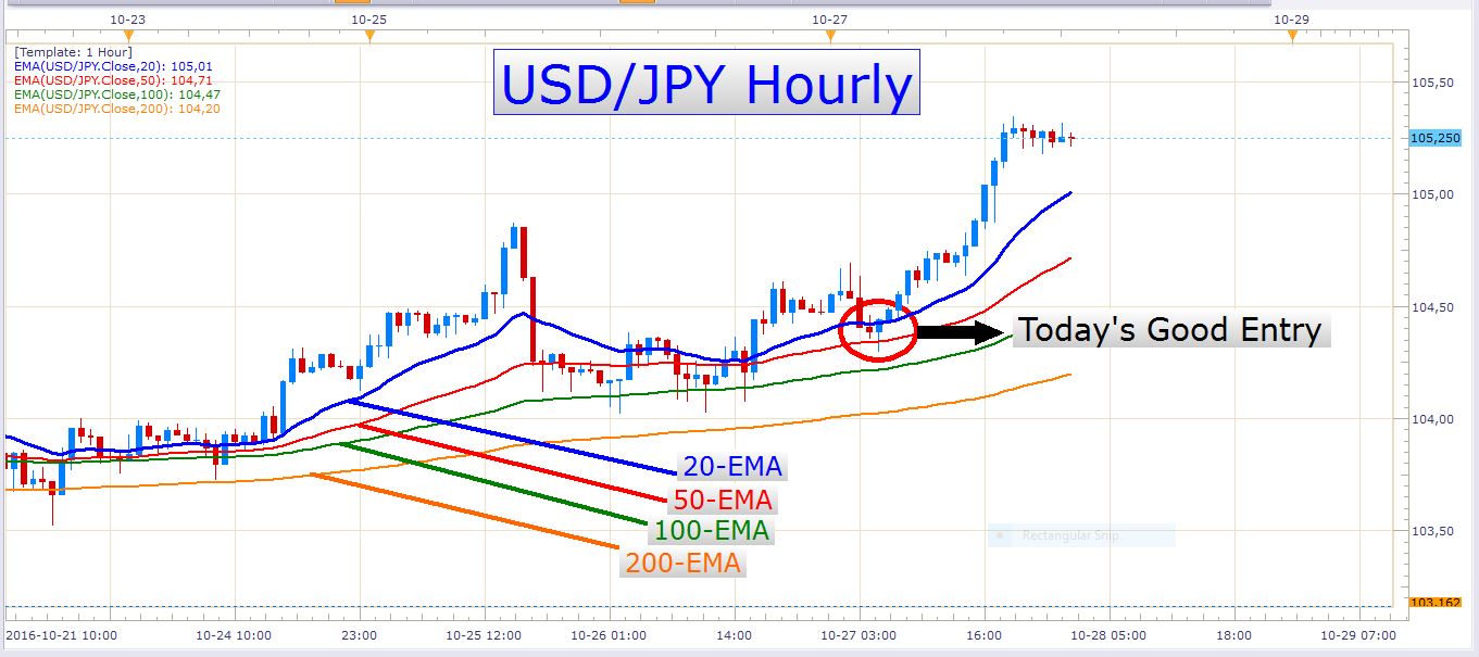 Yesterday I talked about buying dips on the USD/JPY. There was a very good opportunity to buy such a dip today. Look at this chart: