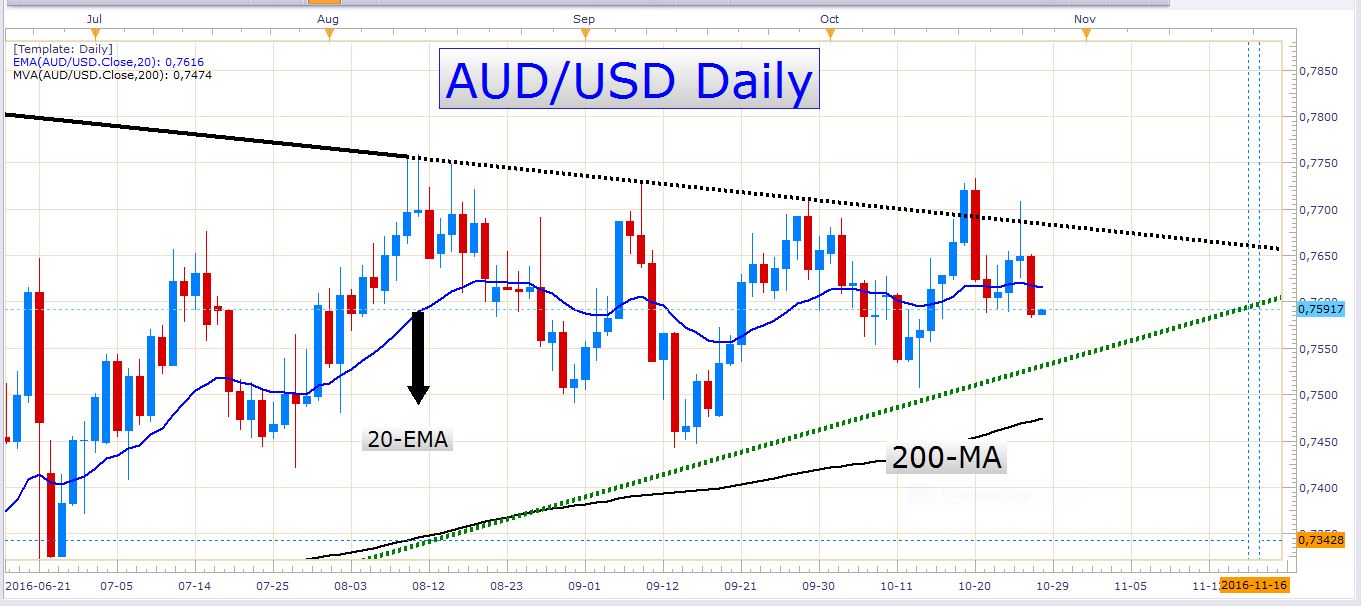 I wrote a lot about this pair in yesterday’s article, and as I expected, the price declined today. Here is a daily chart of the AUD/USD: