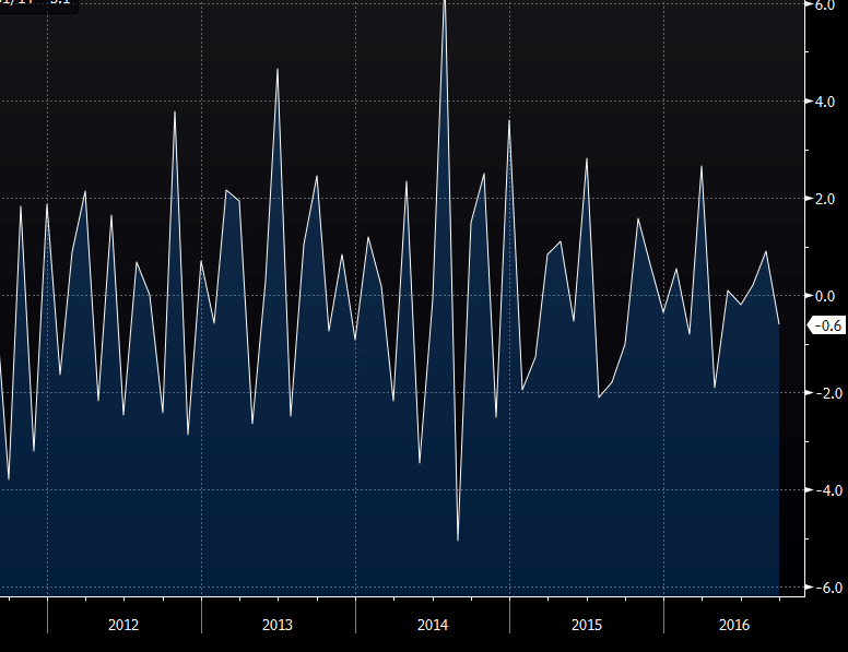 We have seen some decent numbers from the Eurozone recently and the ECB (European Central Bank) president, Draghi, didn't waste a minute to take all the credit for it. Now we see a hiccup in the German factory orders. This might be just a one off and this data is pretty volatile, as we can see from the chart above, but it might be the second sign that the Eurozone economy is not out of the woods yet. Last week's miss in the final EU services PMI was the first signal.