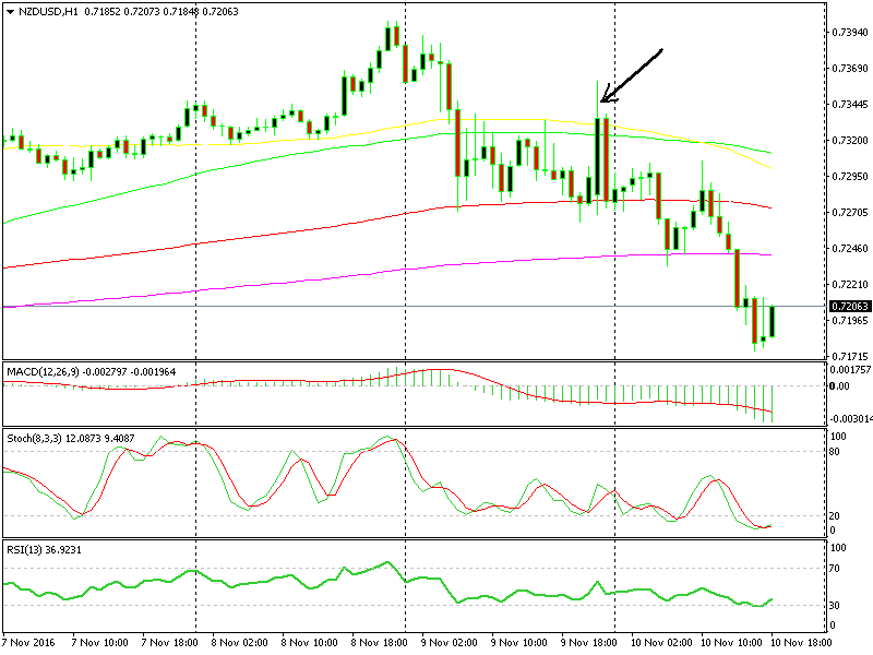 Nevertheless, they cut the interest rates at 8 pm GMT. The funny thing was that the NZD jumped about 100 pips higher right after the cut. That felt strange because usually the home currency loses 100-200 pips when the central bank cuts the interest rates. So, why did the Kiwi jump?