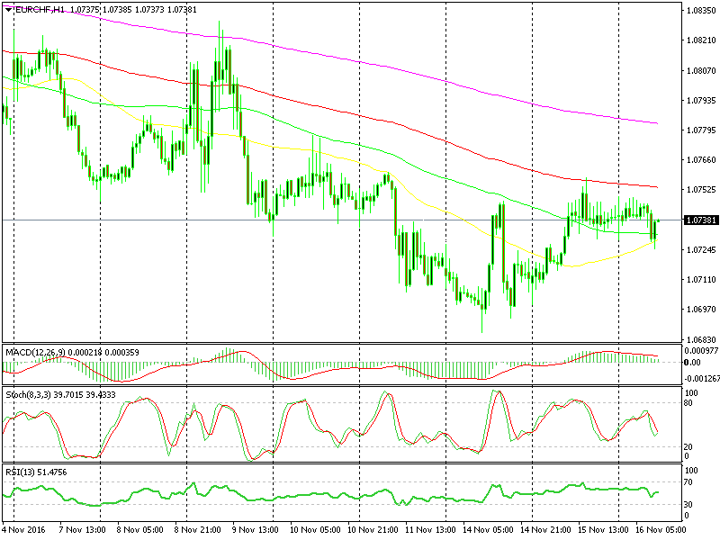We opened a short term buy forex signal last night in EUR/CHF near 1.07 and this recent jump just made our morning. We closed that forex signal manually for a 16 pip profit, although the price reached the initial take profit target just in case you left the trade run its full course.