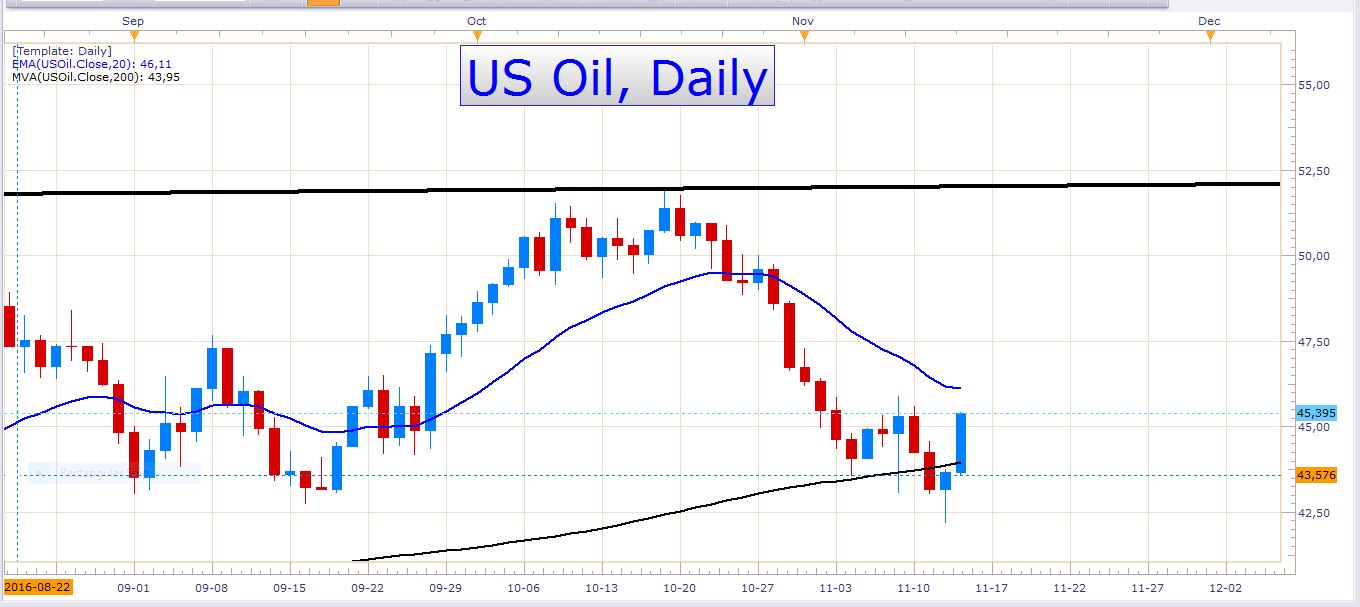 At the moment the pair is forming a rather sharp correction lower. This is probably because of the sharp rise in the oil price today. Look at the following chart: