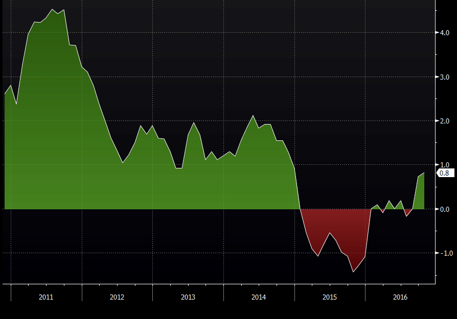 Another thing to notice was the 0.1% increase in the yearly core inflation, from 0.7% to 0.8%, despite missing the expectation. The yearly core inflation also moved higher to 1.6%.
