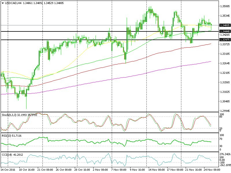 The first resistance level in this forex pair is 1.3450-55, which was the high back in September 2015 and that´s where we can find the 100 simple moving average (100 SMA) on the H4 USD/CAD chart. Below there comes the low of the last two weeks in an area between 1.3375-1.34, so that´s the second support level.