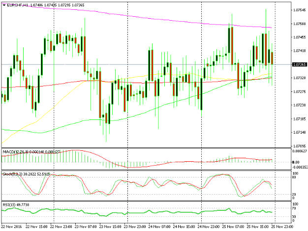 As you can see from the EUR/CHF chart above, the 1.07 level turned to be a very strong support level this week. That´s not a big surprise, though, given the fact that a central bank is sitting just below there. Well, that was a strong enough reason for us to buy this pair close to that level and we closed the week with 70 pips from this pair.