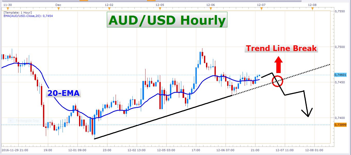 A break below the 20-EMA would be a good start, and a definite break of this trend line would be even better. You see, we don’t want to enter short positions on this pair before this upward momentum is broken.