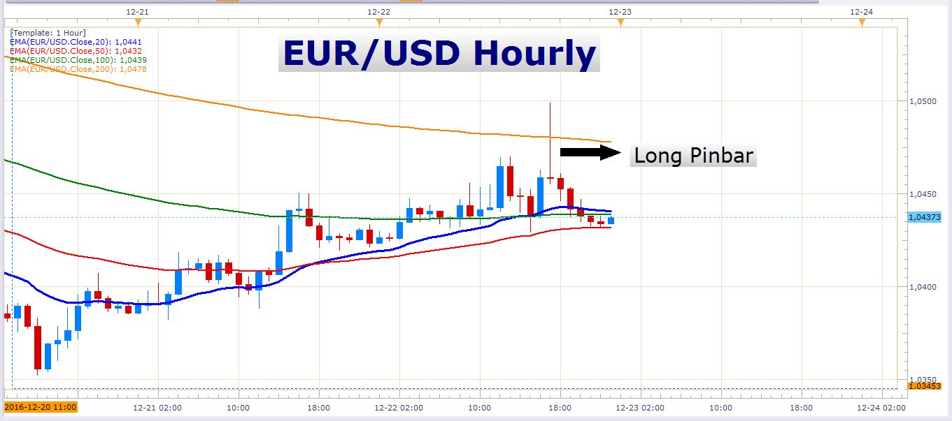 This long pinbar candle tells us that there was competition to sell the pair in that price range. This pinbar is roughly contained in the range of the sell zone displayed on the daily chart earlier in this article.