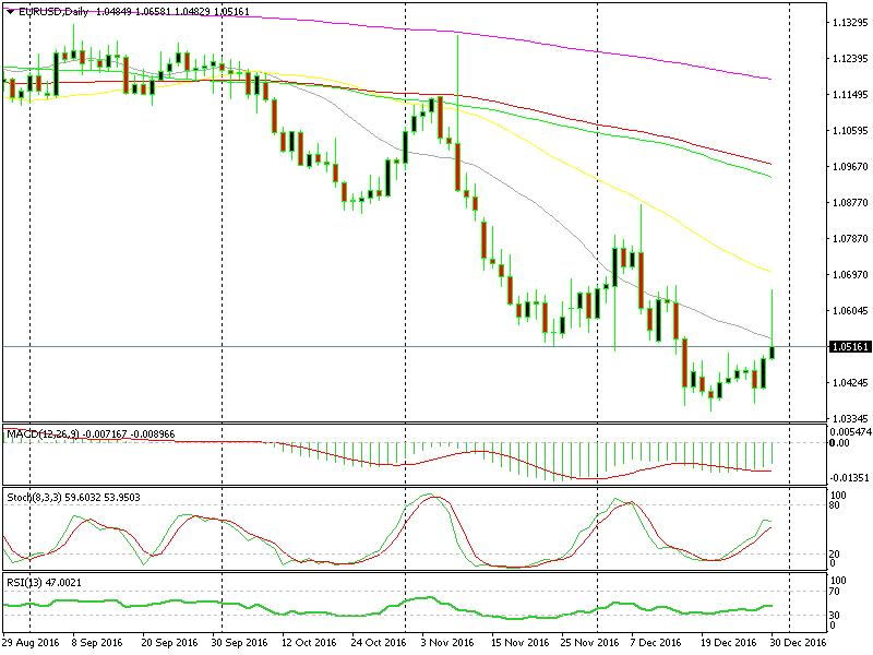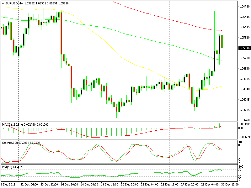 Sometimes the forex market doesn't care for fundamentals. The problem here is that although this 300 pip move might have come as a result of thin liquidity, the forex traders might see this as the beginning of a long term trend reverse when they come back from holidays on Monday.