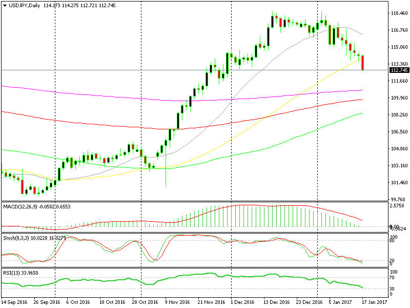 Four important technical indicators pointing up are more than enough for a trade, but the forex market doesn´t always agree with your analysis. Another wave of USD selloff has unfolded today, so the price is about 100 pips lower now, but I´m positive we will see the Buck reverse if Trump doesn´t shoot it in the leg on Friday.