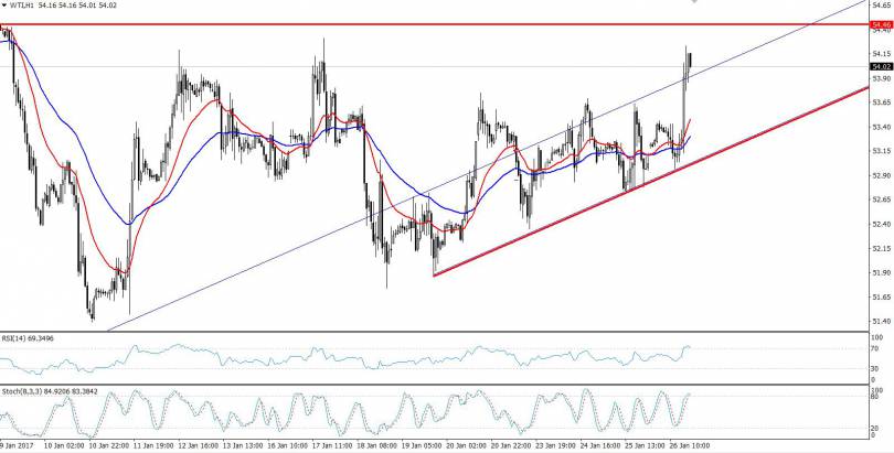 Recalling the analysis report of WTI shared on 25th Jan, where we recommended to buy positions only above the $52.75 level with an initial target of $53.20 and then $53.45. These are already accomplished.
