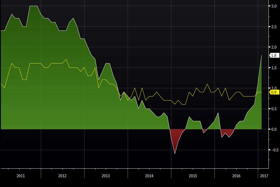 The only caveat was the Eurozone economic data, which was to be released shortly.  The data was released and it was pretty impressive. The Eurozone inflation (CPI – consumer price index) report was great as the yearly number came 3 points above the expectations, jumping year-on-year from 1.1% to 1.9%.