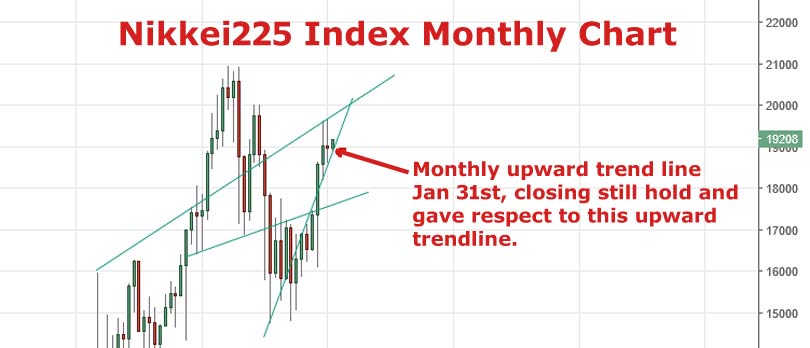 Let’s have a look at the Nikkei 225 Index monthly and daily chartsthat are given below: