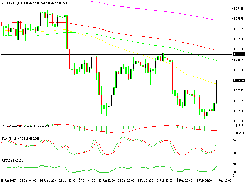 Yesterday we opened a buy forex signal down there and it hit TP just a while ago. Actually, this looks like an SNB intervention move.