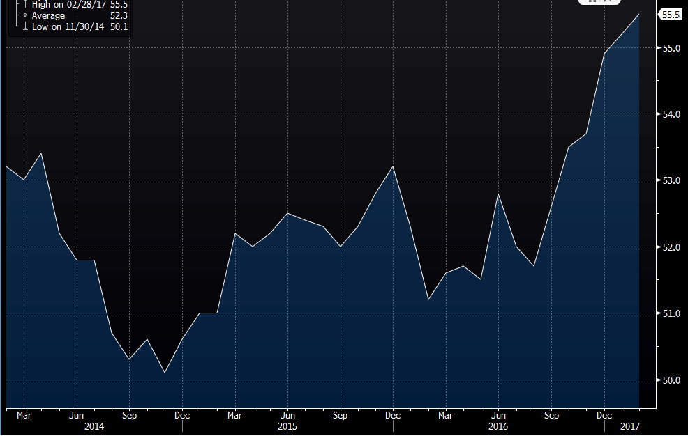 Although the German flash services PMI is below 55 points, it still grew by 1 point this month. The rest of the numbers all moved above 55 PMI points, with German manufacturing and French services at 67 and 56.7 points respectively.