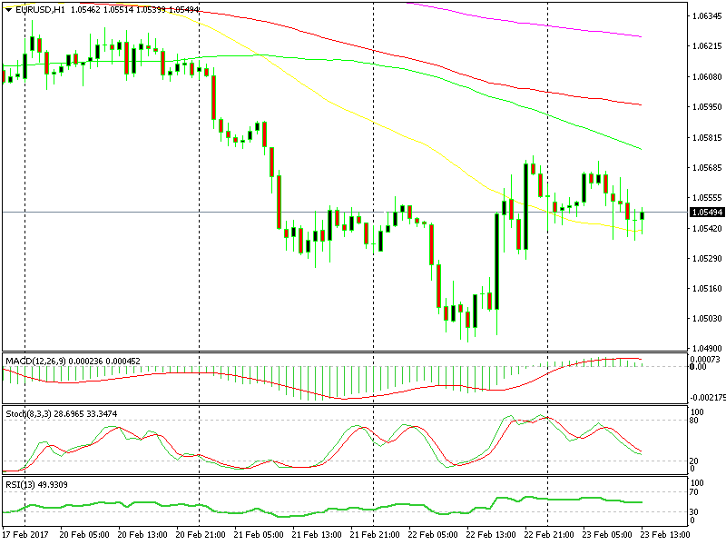 During the Tokyo session though, and so far in the European session, we have seen a pullback take place. The price retraced to 1.0540 where we can find the 50 SMA in yellow, as you can see on the forex chart above.