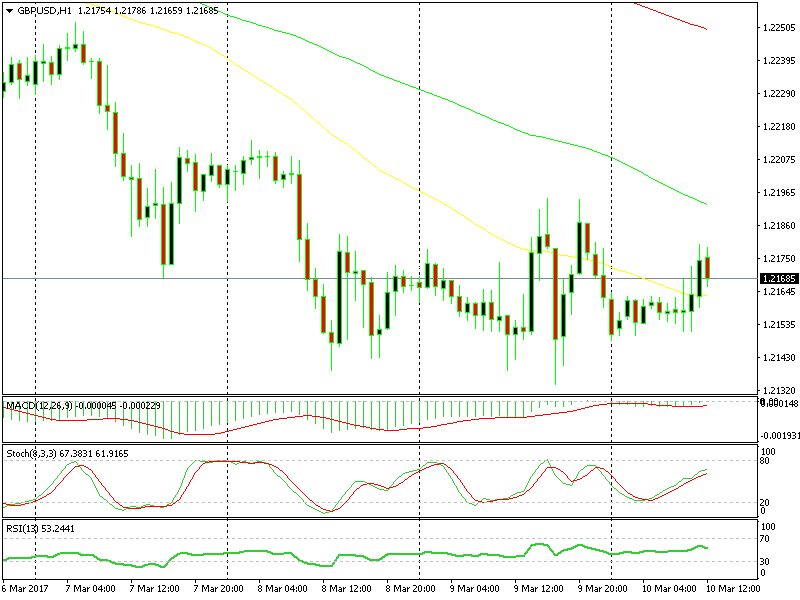 GBP is not taking much notice actually. GBP/USD finally moved above the 50 moving average on the H1 chart. I think this is a good opportunity to sell this forex pair. But, I´d like to wait until we get to yesterday´s highs around 1.22, which is where the 100 SMA stands.
