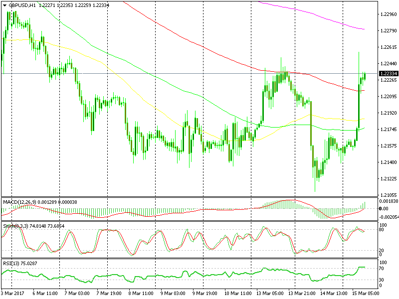 The first mild support comes at 1.22, but take it with a pinch of salt. In fact, 1.2215 is a stronger support since that's where the 100 SMA (red) stands. That SMA provided solid resistance yesterday.