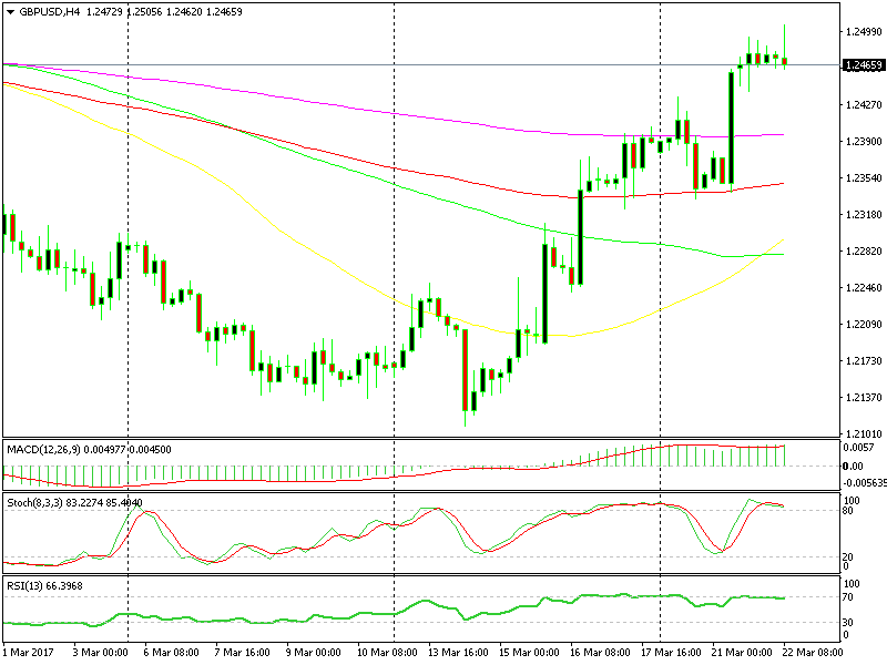 Speaking of the H4 chart, from the image above, we can see the red moving average providing solid support late last week and early this week. It comes at 1.2340-50, so that will be another tough obstacle for bears to overcome.