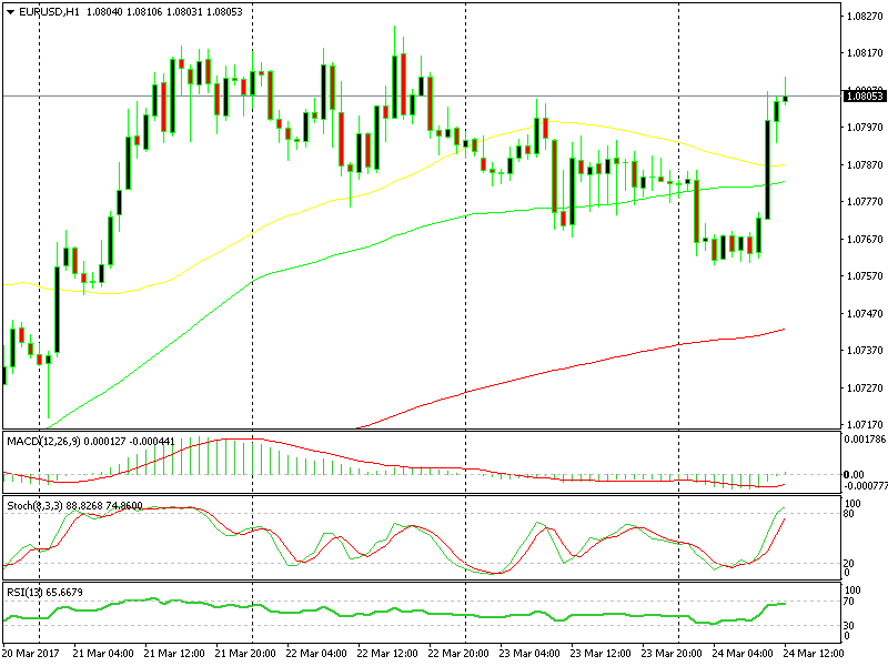 I would have loved to wait until 1.0820, but judging by the price action this might be the top for now. The price couldn´t move above 1.0810 after the great Eurozone economic data this morning. It also hasn´t been able to do so in the last couple of hours either, despite being close.