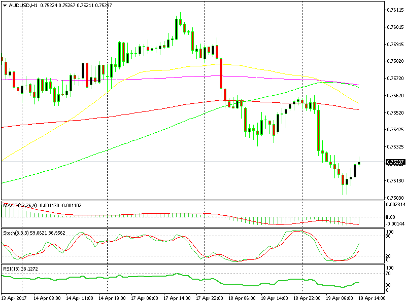 It looks like this is the beginning of another bearish trend for the AUD. Looking at the charts of forex majors, we can easily see that AUD/USD has been the only one to decline in the last two days, while the rest of the major currencies are substantially higher than the Buck.
