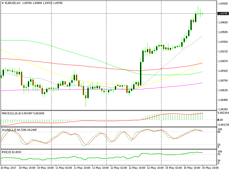 By the way, at the moment, I´m looking at EUR/USD as well. The buyers had another go at 1.10 today, but couldn´t quite make it and the last two hourly candlesticks closed as dojis, which signal a trend reversal. So, I might open a sell signal in EUR/USD now that our other signals closed.