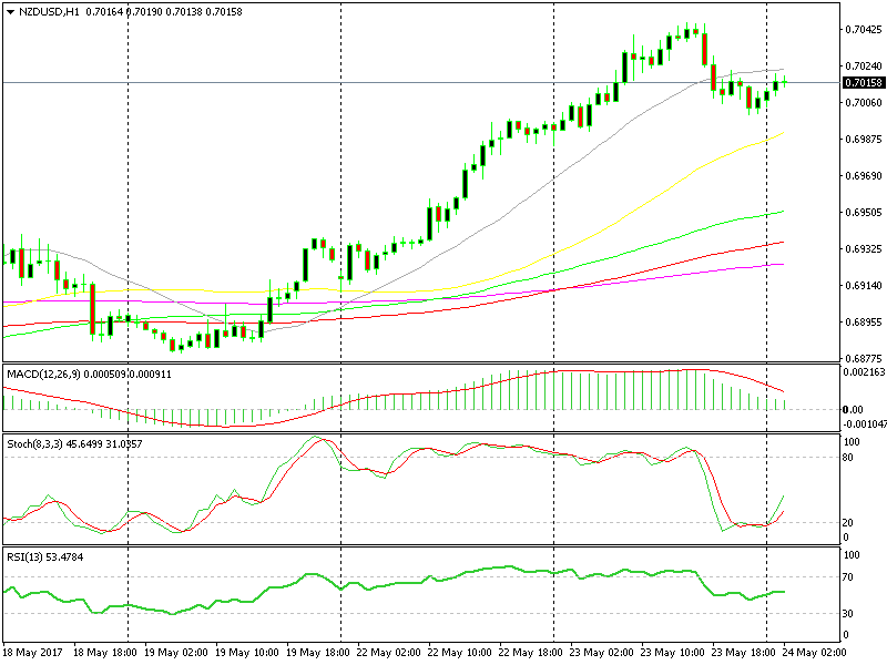 NZD/USD has climbed a small hill in the last 2 weeks, but in the last few days, it has been one directional. The uptrend has accelerated and the pullbacks have been minimal.