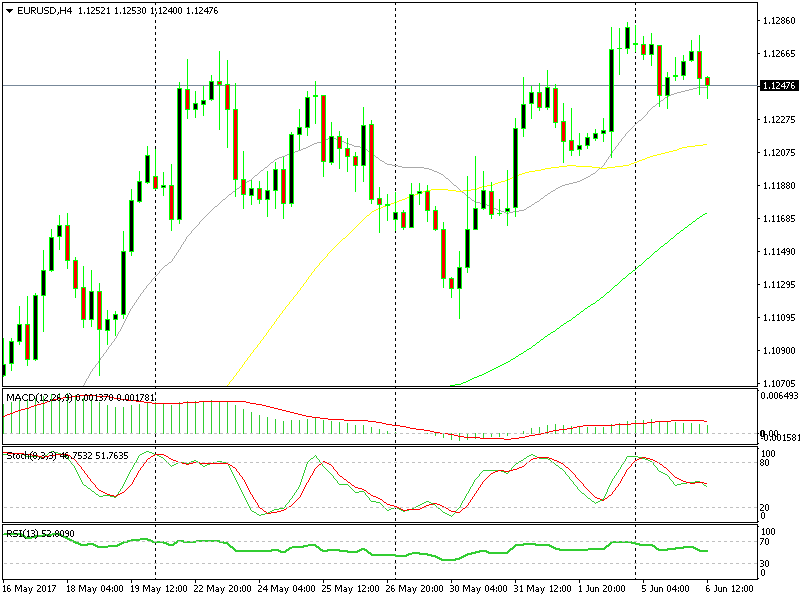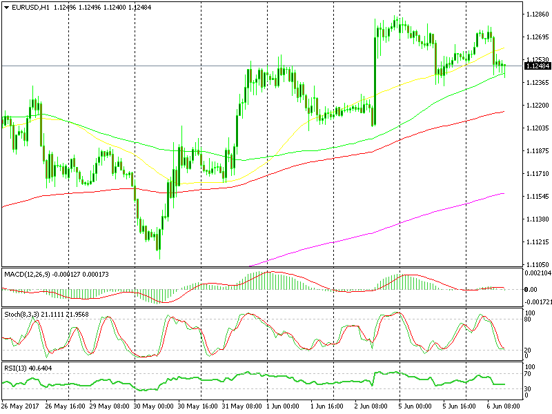 So, we moved about 30 pips lower this morning, but the area around 1.1240 is providing some support. This area is where the 100 SMA now stands on the hourly forex chart.