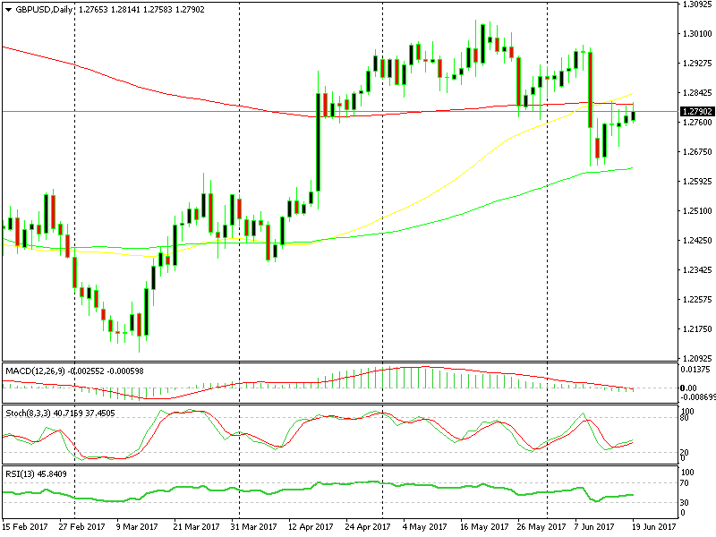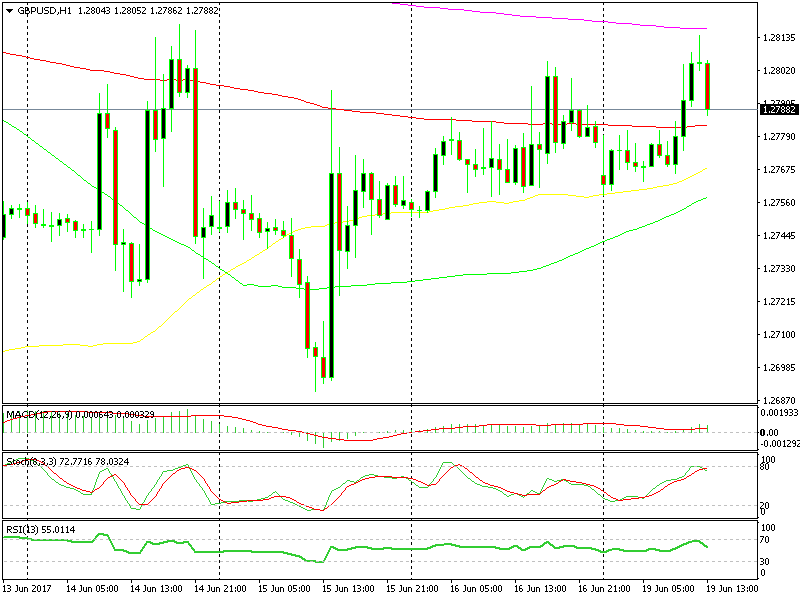 Besides that, the 1.2780 level where we opened our forex signal, is a long term support/resistance level on the daily chart. The 100 SMA (red) is also holding around there, which will likely add additional strength.