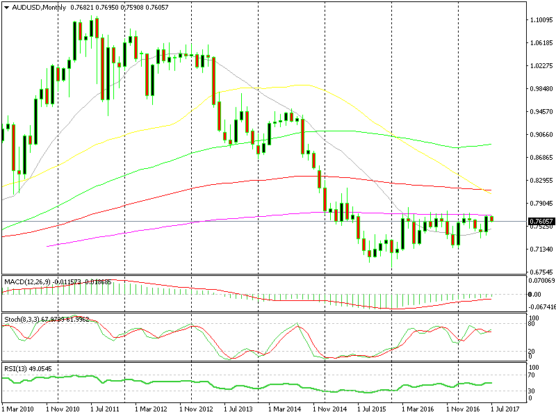 One of the reasons we decided to open the signal was the picture in the monthly forex chart. If you look at the chart above, you can see that the 200 SMA (purple) has been killing all buyer attempts to take this forex pair higher over the last two years.